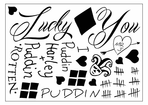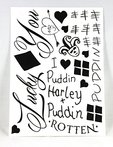 - A 5" x 7" Sheet of 16 Temporary Tattoos - Lucky You, Rotten, Puddin, Mr. J, Hearts, Diamonds, Scratch Counts, I Heart Puddin, and more!