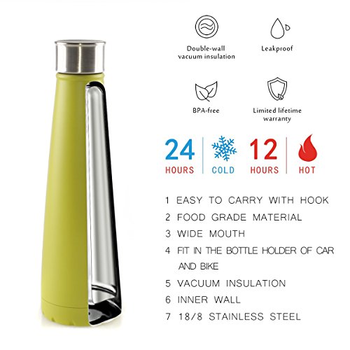 -. Title : Onlydroid Stainless Steel Vacuum Insulated Water Bottle Leak-proof Double Walled Keeps Drinks Cold for 12 hours & Hot for 24 hours 15 oz