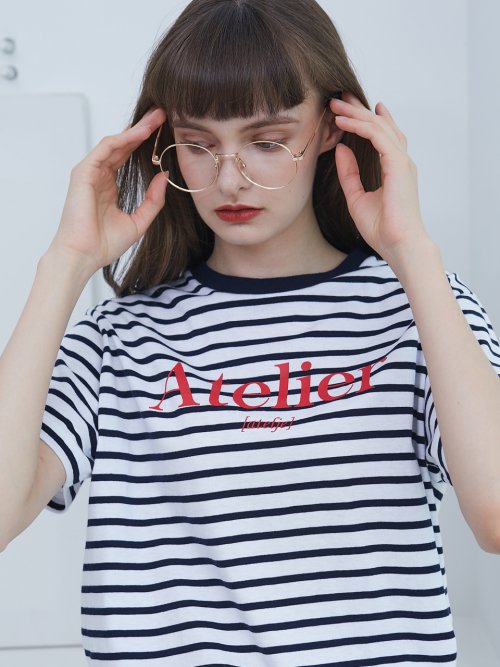 룩캐스트(LOOKAST) NAVY STRIPE ATELIER LOGO TSHIRT룩캐스트(LOOKAST) NAVY STRIPE ATELIER LOGO TSHIRT