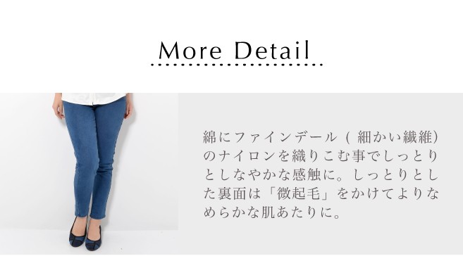 横に伸びてひざまわりの動きもラクラク。しっとりとした裏面は「微起毛」をかけてよりなめらかな肌あたりに。