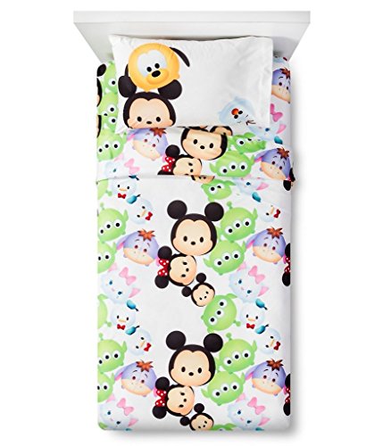Product Description This adorable set feature the adorable Disney Tsum Tsums. Made of 100% soft, microfiber, this set includes (1) Twin Comforter - 64" X 86", (1) Twin Flat Sheet - 66" X 96", (1) Twin Fitted Sheet 39" X 75", (1) Pillowcase - 20" X 30". Tsum Tsums featured: Mickey, Minnie, Pluto, Marie, Eeyore, Stitch, More! 0