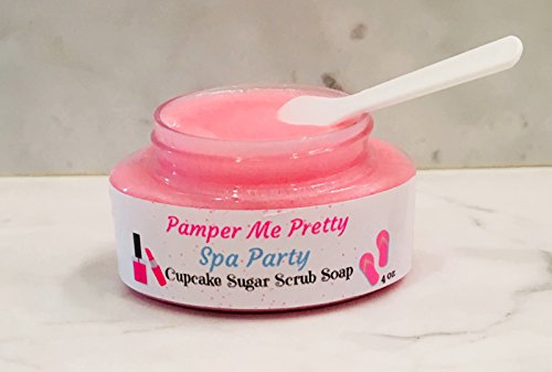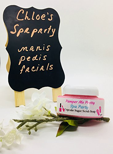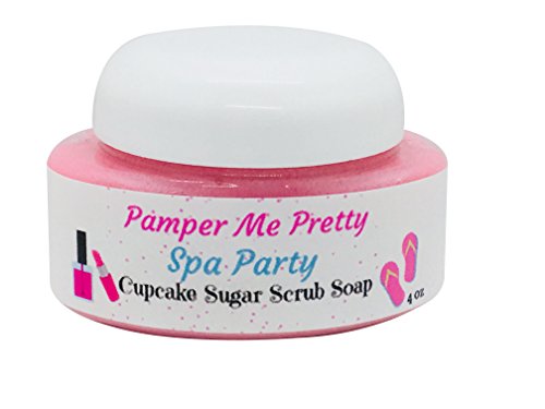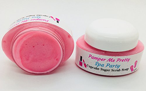 GIRLS SPA PARTY SUPPLIES but good enough for moms to use. This pink cupcake scented sugar scrub soap exfoliates, and cleanses and girls will love the custom design making their party extra special.