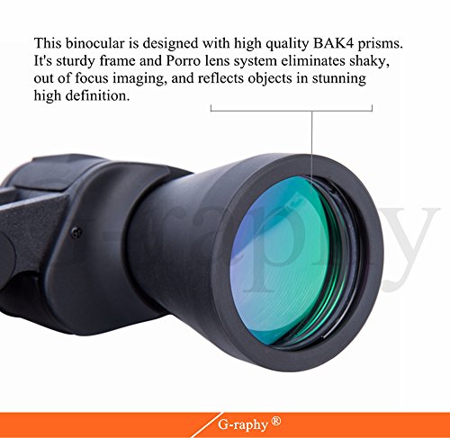 20X50 MAGNIFICATION: Binoculars provide 20X high powered magnification and a wide FOV perfect for surveillance, hunting, birdwatching, concerts, and much more.