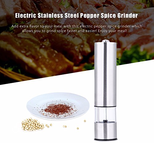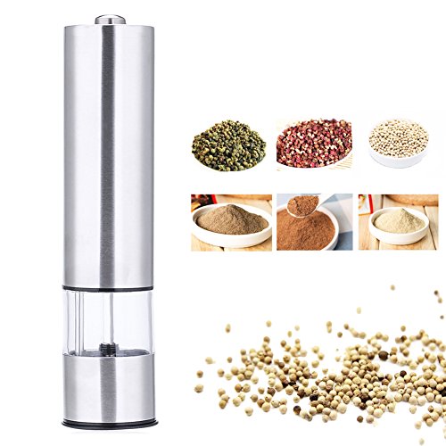 Pepper Grinder, Stainless Steel Electric Pepper Grinder or Salt Grinder Mill, Battery Operated with Light, Adjustable Ceramic Grinder