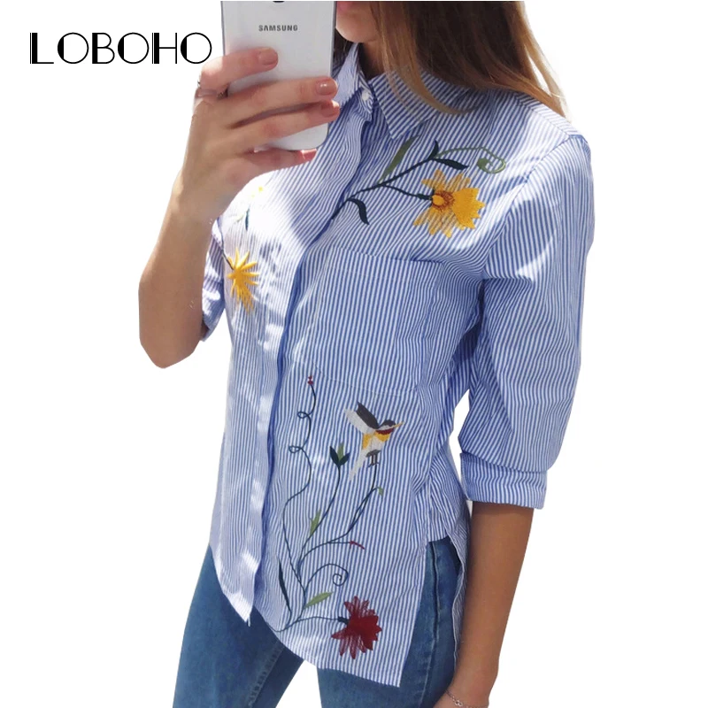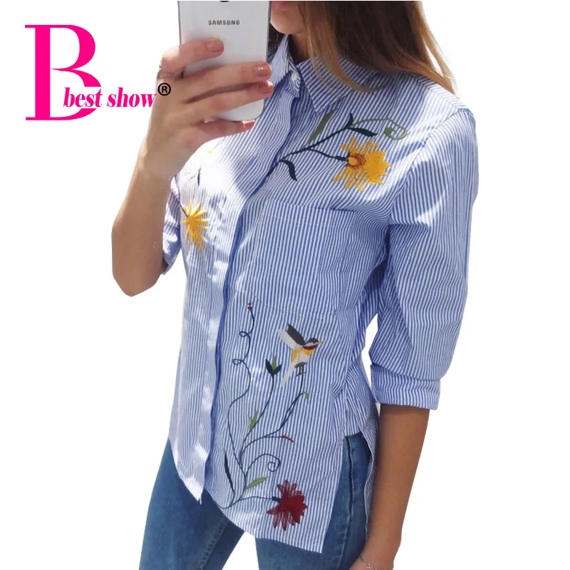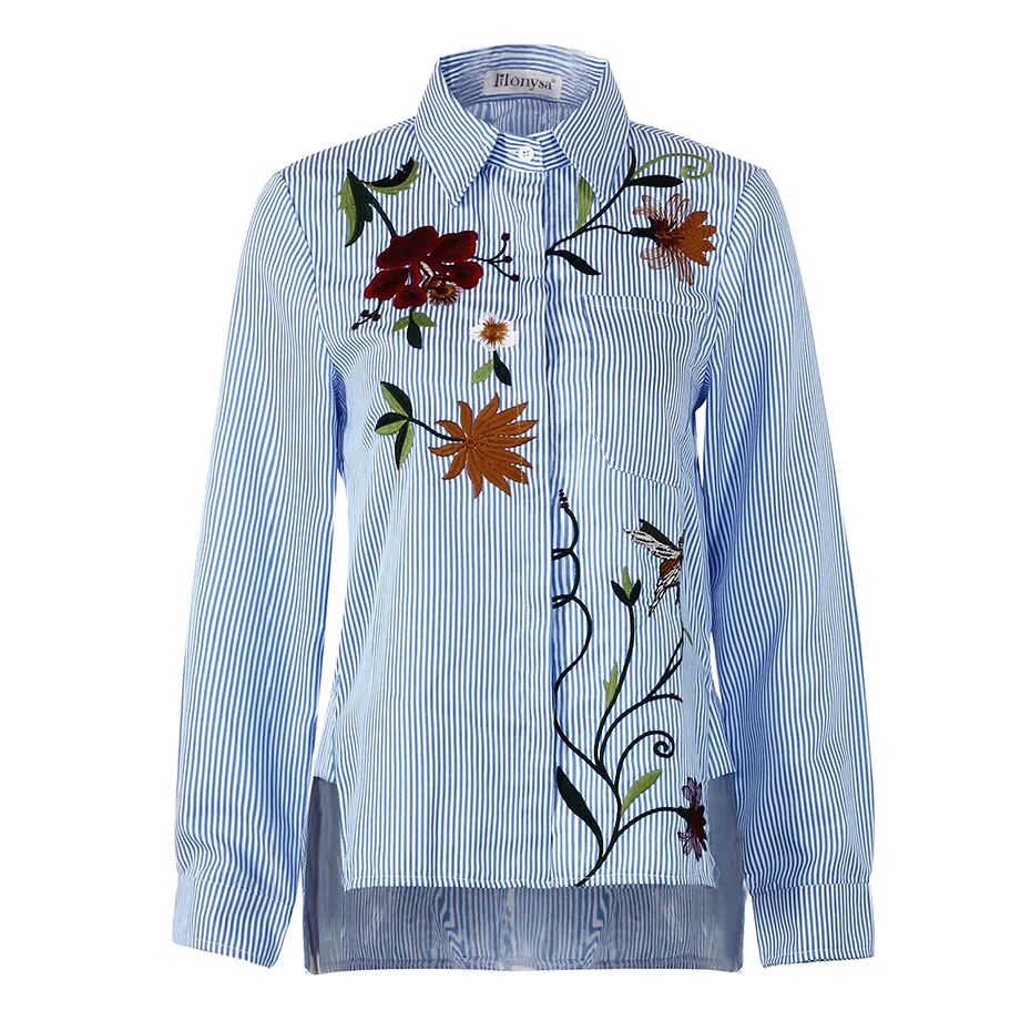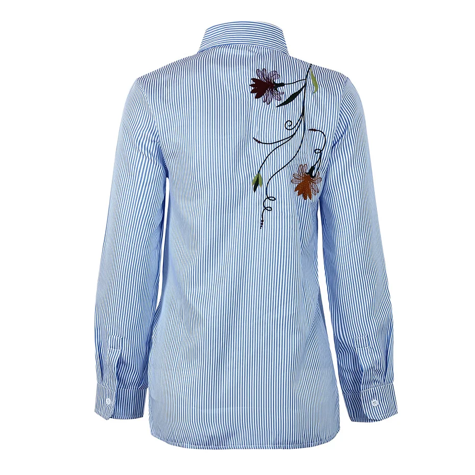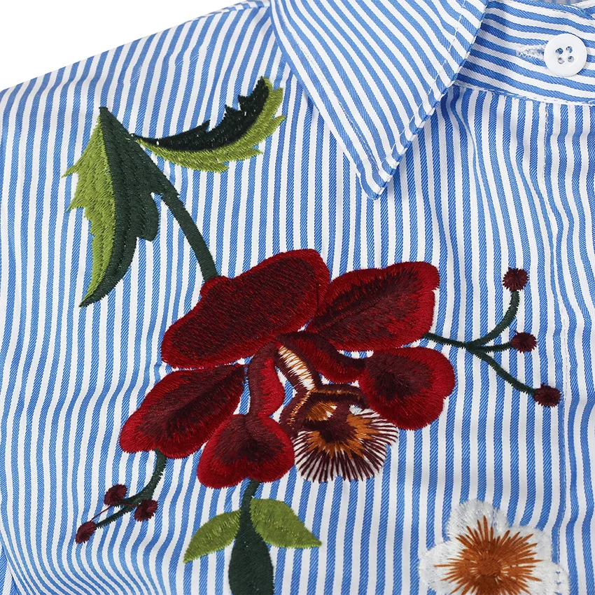 Feature :Embroidery Flower Striped Chiffon Blouse
