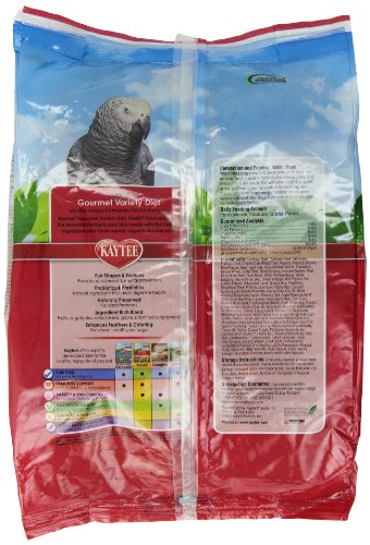 Studio : Kaytee Publisher : Kaytee Binding : Misc. Product Description Kaytee Fiesta Parrot food is a nutritionally fortified gourmet diet made of a premium blend of fruits, vegetables, seeds and grains offering maximum variety, fun and nutrition for pet birds. Fiesta contains prebiotics and probiotics to support digestive health and is formulated with your bird species in mind. Kaytee understands that sharing your life with a pet bird is not only enjoyable but very enriching. Kaytee shows our love by ensuring we provide your pet bird with the best nutrition for a long and healthy life. With over 150 years of nutritional experience, it's no wonder why Kaytee is at the heart of every healthy feeding routine. 0