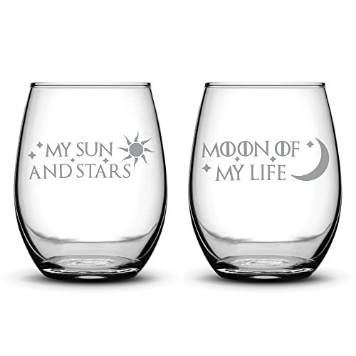 (Integrity Bottles)/Kitchen Dining/Tableware/DIRECT FROM USA/Premium Game of Thrones Wine Glasses, Set of 2, Moon of My Life, My Sun and Stars, Hand Etched ...