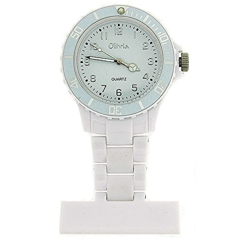 -. Title : The Olivia Collection White Rotating Bezel Plastic Nurses Fob Watch TOC65