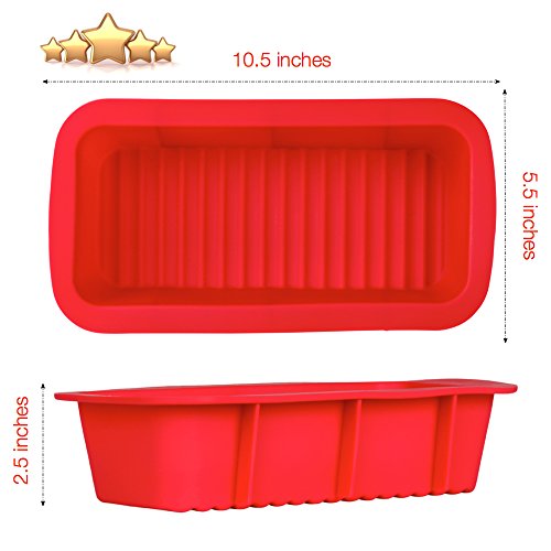 -. Brand : Baking Wizards -. Color : Red -. Feature : PREMIUM QUALITY BAKEWARE - Don't look for cheaper alternatives for your kitchen as our nonstick breadpan are made with professional grade silicone. Best used for making homemade french artisan, banana bread baking and many more dishes / SAVE MONEY & THE ENVIRONMENT - Our multi-purpose pans can be re-used thousands of times and eliminates the need for parchment paper. Our set includes free bbq basting brush / SAVE TIME - Easy pop out design. No more scrubbing down aluminum metal, ceramic and glass pans as our pans are amazingly easy to clean with gentle soap and water. Size is 10.5 inches wide and 2.5 inches deep. Our cookware is microwave, freezer, oven and dishwasher safe / FDA & LFGB Approved - Feel Safe in the knowledge that all materials used in our pans are certified and BPA Free. Temprature resistent upto 450F / DISCOVER BAKING - Perfect gift idea for the holidays (Halloween, ThanksGiving, Christmas). Create new food and recipes for each holiday and become a master breadmaker -. Label : Baking Wizards -. Manufacturer : Baking Wizards -. Model : BWSLP -. PackageQuantity : 1 -. ProductGroup : Kitchen -. ProductTypeName : KITCHEN -. Publisher : Baking Wizards -. Size : Large -. Studio : Baking Wizards -. Title : Loaf Pan - Best Bakeware for Baking Bread and Large Cakes - Includes a Free Basting Brush - Commercial Grade Non Stick Silicone Mold