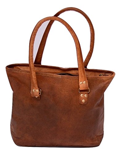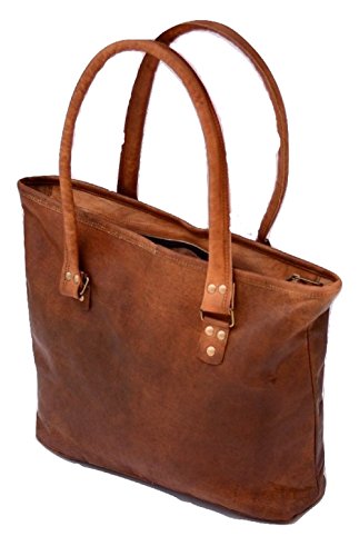 -. Feature : Size : 12 inches Tall and 16 inches Wide one FRONT POCKET Two Zipper pocket inside.. / Style-Tote/Shoppers/Shoulder Bag, Material - Leather , Color-brown, Making- Handmade / PLEASE Note: These are not colored bags and shades are given through a natural and traditional process using vegetable oil and sun tanning, so the color will differ from the one pictured here. Every bag has a slightly different shade / NOTE: Leather bag have a distinctive SMELL that fades away with days of use. Most of our customers tend to like this earthly smell, some don't. / given pictures. Because every bag is handmade from leather which is naturally tanned and not chemically treated, each bag has unique and individual markings and coloring's and may vary slightly from our photographs.