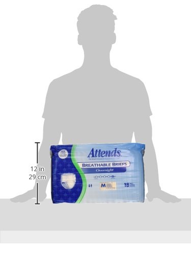 Attends Overnight Breathable Briefs size Medium, 18 Count (Pack of 2)