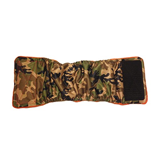 Studio : Barkerwear Publisher : Barkerwear Binding : Misc. Product Description Now you can get Barkerwear top-of-the-line premium diaper products for your beloved dog! This belly band is made with premium fully waterproof PUL (polyurethane laminate) fabric material (often used to make high-end baby diapers) for complete leakage protection. A best-in-class belly band for your furbaby that only deserves the best Made-in-USA products! Use Barkerwear's washable belly band to keep your male dog from marking around the house. It is designed to help with housebreaking and/or incontinence problems (in older male dogs). Just wrap the belly band around your dog's genitals and over his back. The belly band is secured with a hook-and-loop strip and has soft-gathered elasticized edges to ensure a great and customized fit. It can be used alone or with Barkerwear reusable diaper liners for extra protection. Belly bands help inhibit peeing, and are not intended to absorb pee. It is made with super-soft lining on the inside and high-quality polycotton fabric on the outside. Between the outer shell and the lining, there are an extra layer of super absorbent Zorb pad and a waterproof moisture barrier that are completely sewn on for maximum leakage protection. You won't find another belly band with this kind of quality on the market for your furbaby! Material: PUL (polyurethane laminate) fabric, soft lining, absorbent Zorb pad, waterproof underpad. Designed and handmade in Huntington Beach, California USA. Barkerwear Sizing Guide For Belly Bands: