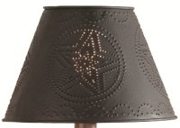 About the productOur hand painted, metal punched shades accent our collection of lamps beautifully! The 6" shades have a chandelier bulb clip. The 10" shades have either a standard bulb clip or socket ring. The 12" and 14" shades have a washer fitting to use with a harp and finial. Individually clear-wrapped.