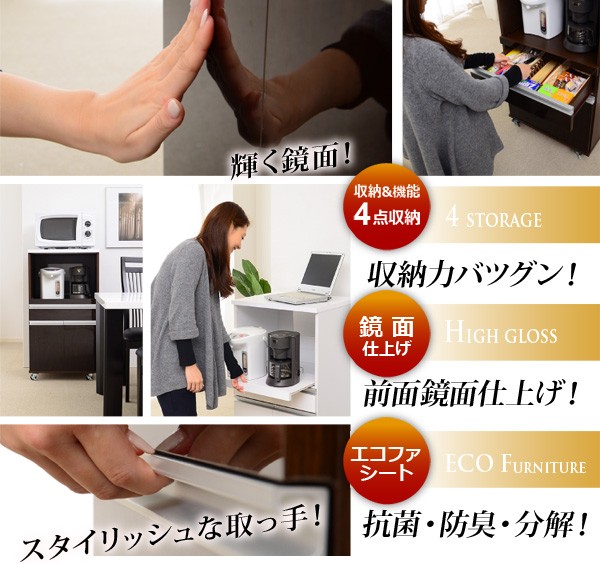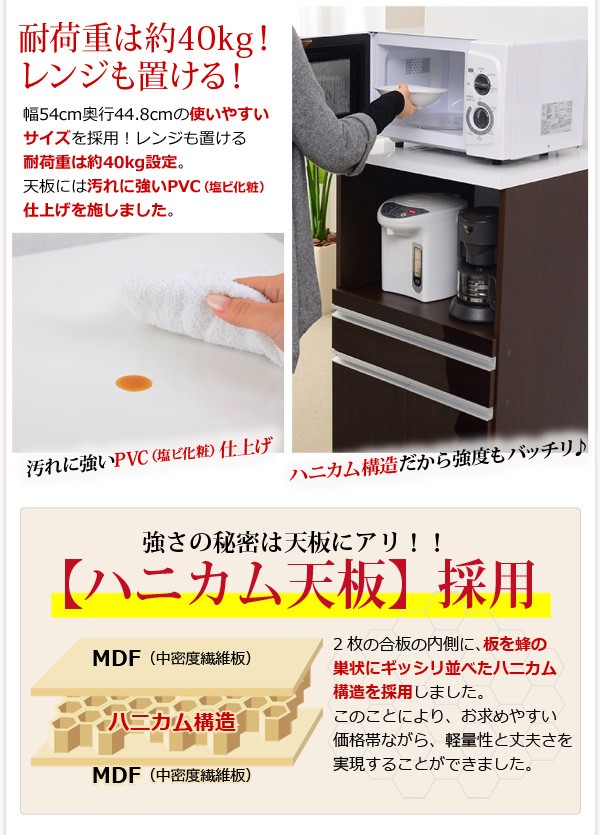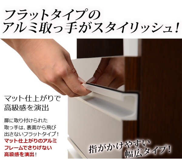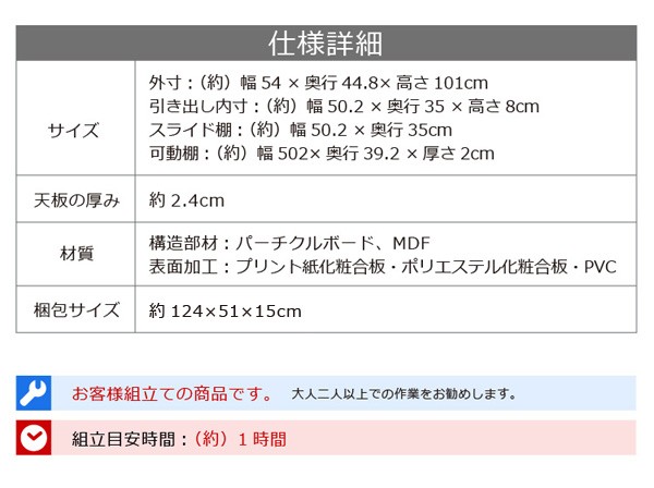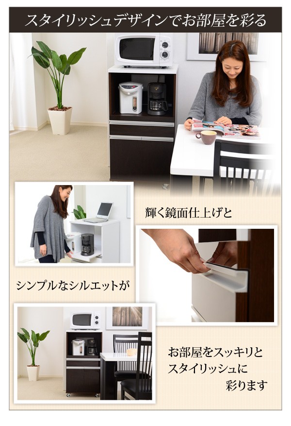 【商品について】■サイズ:外寸:(約)幅54×奥行き44.8×高さ101cm■カラー:ダークブラウン ホワイト■素材:材質:パーチクルボード、MDF表面加工:プリント紙化粧合板、ポリエステル化粧合板、PVC※鏡面仕上げ(ハイグロス加工)※背面化粧仕上げ※2口コンセント(合計1500W)※スライドレール採用■その他:生産国:中国・梱包重量:約30kg・お客様組み立て商品です。(組立目安時間:60分前後) ※メーカー直送品、商品代引き不可