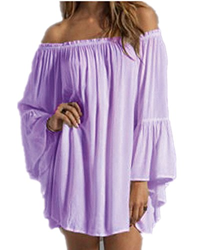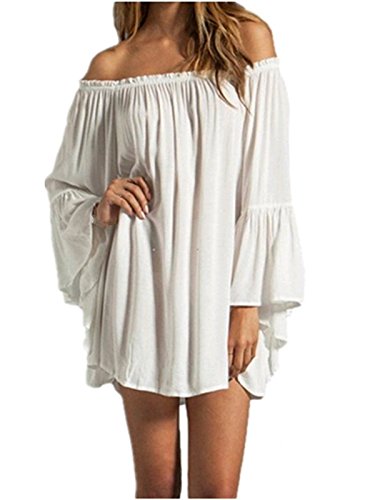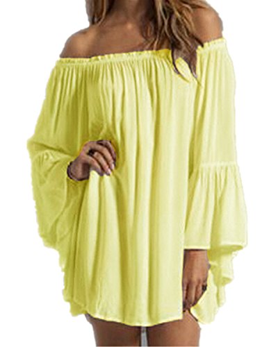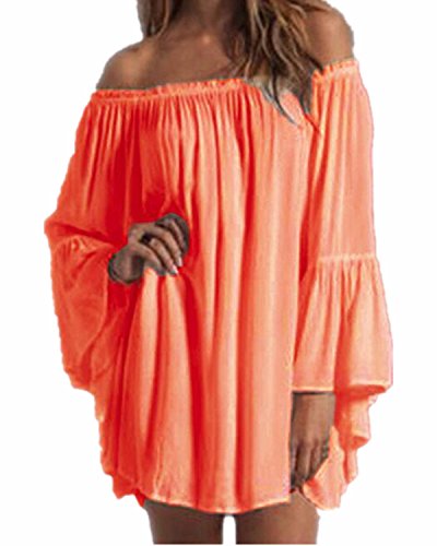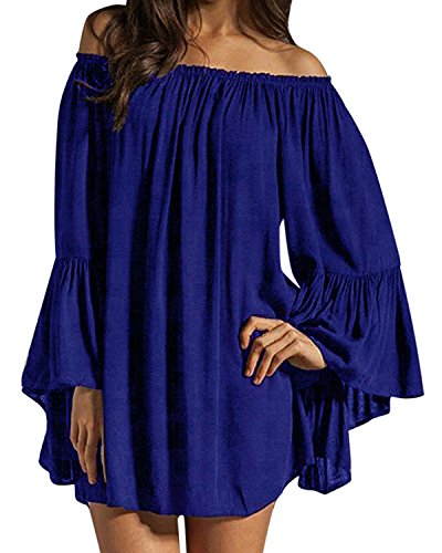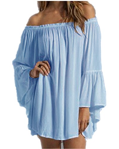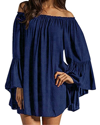 -. Title : ZANZEA Damen Schulterfrei Chiffon Langarm Abend Party Club Oberteil Mini Kleider
