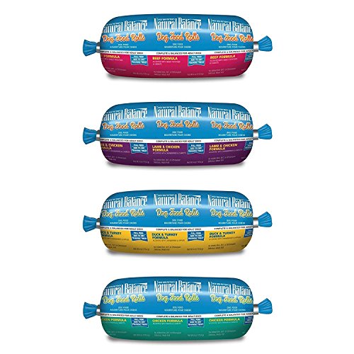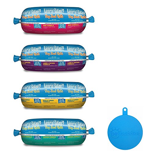 -. Feature : Packed with protein and meaty flavor that dogs crave / Small size makes this a great stocking stuffer / Nutritious topper for Natural Balance dry dog foods / No corn, soy, wheat, sodium nitrite, artificial flavors or colors; made in USA / Convenient 4 flavor TRIAL SIZE sampler -- beef, chicken, duck & turkey, and lamb & chicken -- 4 Rolls Total, 4 Ounces Each -- Plus Silicone Pet Food Cover
