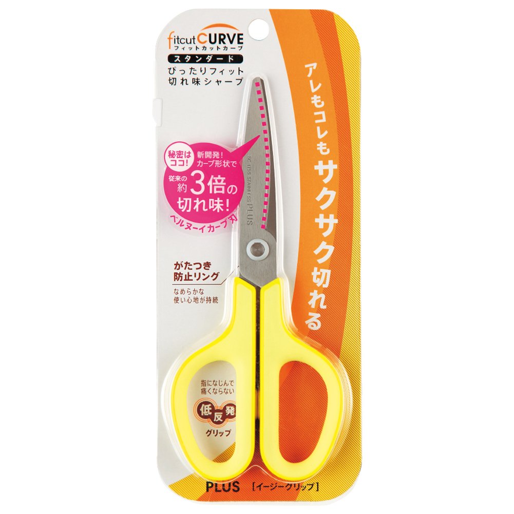 PLUS FITCUT CURB Easy grip [Standard] SC-175S Yellow | Sharp cutting and optimal comfort scissors - [Japan Import]