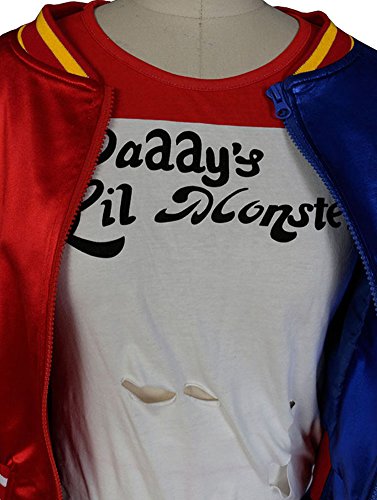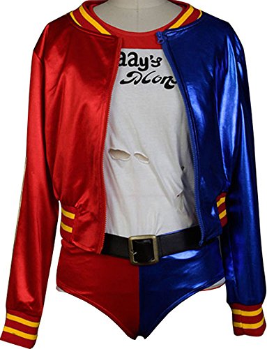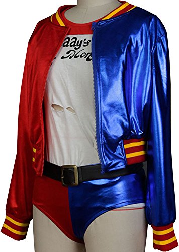 -. Feature : Women's Suicide Squad Harley Quinn Costume / Fabric: Polyster,Elastic Cotton / Including: Jacket+Shirt+Shorts+Belt+Gloves