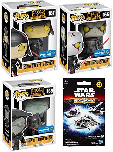 -. Feature : Star Wars Pop Bobble Head Figure Set Exclusive 3 Rebels Cartoon series / Rebels The Inquisitor with Light Saver #166 / Fifth Brother #168 / Store Exclusive Funko Star Wars: Pop! Seventh Sister #167 / Vinyl Bobble-Head 3-pack Funko! Figure stands 3 3/4 inches and comes in a window display box. / Star Wars Micromachines Series 5 Bind bag mini starship vehicle