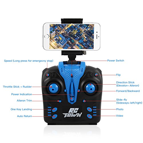 With WIFI real-time transmission you can control the drone or watch video through your phone. App both are IOS / Android phones compatible. And we also provide a remote control with a phone holder which allows to use remote control to operate the drone.