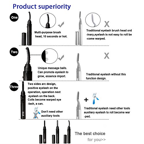 How To Use: Load the battery and turn on switch, then preheat for 10s. Apply mascara to both eyes. Lift the eyelashes with eyelash curler and slightly turn inward and press for 3-10s, you can repeat above steps for better effect.