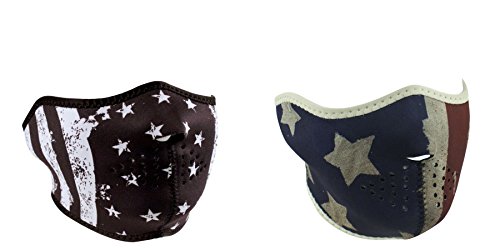-. Feature : This Product is a 'Bundle' of 2 Neoprene Face Mask Items identified as a 'Black & White Vintage U.S. Flag Face Mask' and a 'American Patriot Flag' / The First Facemask Item is the ZanHeadgear 'Black & White Vintage U.S. Flag Face Mask' Half Face Neoprene Face Mask / The Second Facemask Item is the ZanHeadgear 'American Patriot Flag' Half Face Neoprene Face Mask / Face Masks / Ski Mask Items are made of Durable, Naturally Warm & Water Resistant Neoprene Face Mask Material / Face Mask Sizes are adjustable, by up to 2 inches, using the Hook & Loop closure, located at the back of the head