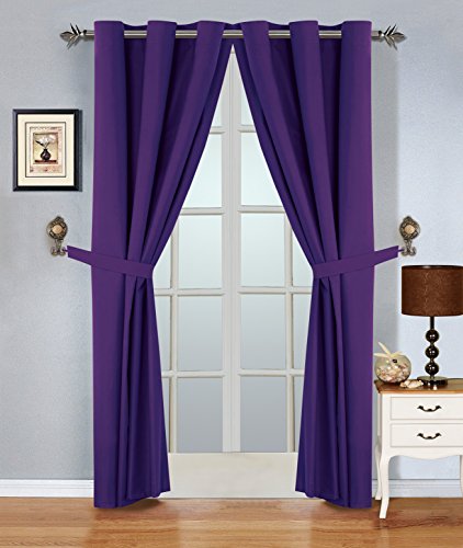 WPM 4 Piece Blackout Curtain Set. Grommet Curtains and Tie Backs (Purple, 54 Inch Wx96 Inch L)