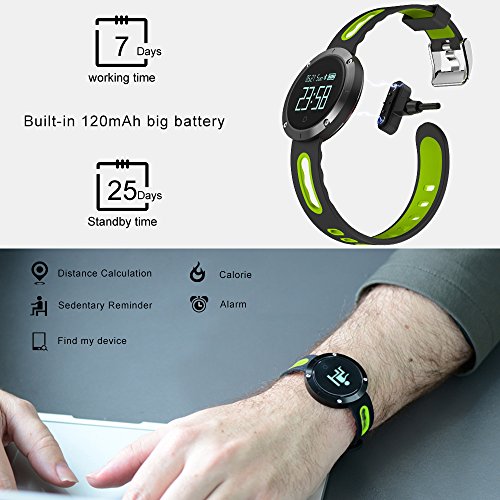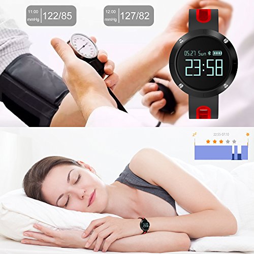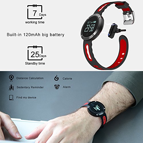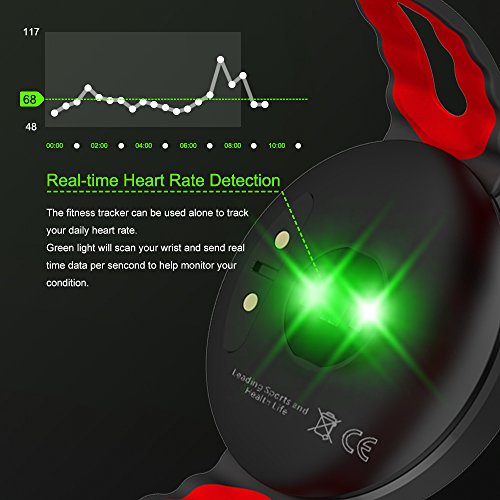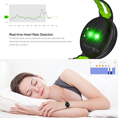 -. Feature : ✅HEART RATE MONITOR - Get to know yourself better with this fitness tracker. It will monitor your heart rate every 10min to see if your heart rate is normal. You can track heart rate and blood pressure all day without phone. Green light scans your wrist and alert you if data reach the highest or lowest warning line set in APP. Raise your hand and the screen lights up. Convenient and practical! / ✅WATERPROOOF & SPORT TRACKER - IP67 waterproof and dustproof watch ensures your daily use without inflow and pollution. Convenient to wear it while swimming, diving, surfing and taking cold bath. Meanwhile, it is perfect to track steps, distance, calories burned and sleep quality. You can analyze trends and see your progress. Bluetooth 4.0 allows the range of 10m to induct. Helps you achieve fitness goal everyday! / ✅MULTI-FUNCTIONAL WATCH - Sync historical data and you can monitor all kinds of status. A prefect phone reminder in daily life. Message and other notifications like Facebook. Twitter, LineSKYPE, Whatsapp will display the icons and you can directly read them. Start anti-lost mode to protect your phone, set alarm to remind you to move and get up. No more worries about out of control. / ✅HIGH PRECISION QUALITY - Round touch screen with silicone watchband is special designed and stylish. A key to control all the functions, easy and convenient! Large OLED screen (0.95in) is perfect to read and control. Magnetic USB cord makes charging effortless and expedite. Long battery time about 25 days to standby and 7 days for simple use. Light enough to be with you all the time! / ✅WIDELY COMPATIBILY - Over 200 kinds of smartphones are compatible, including Android>4.3 and iOS>8.0. Scan QR code and download APP to set up personal information. Package includes 1 x Fitness Tracker and 1 x User Manual. 24-Month Warranty and lifetime customer service.