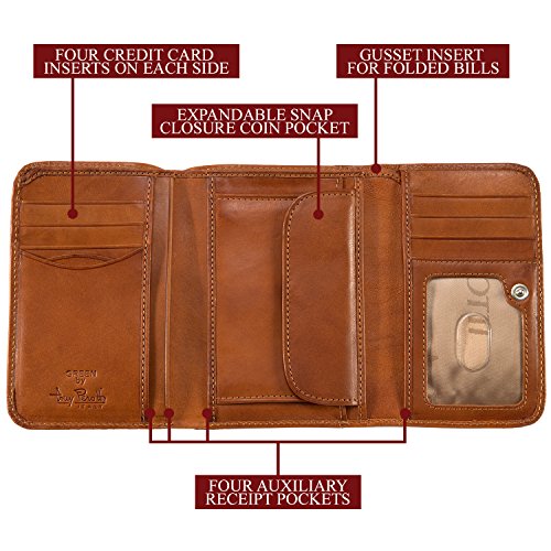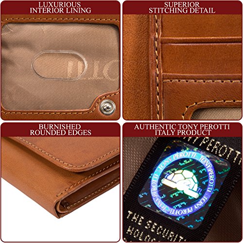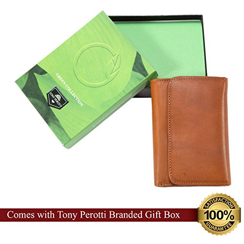 Tony Perotti Italian Leather Trifold Clutch Wallet With Id and Coin Pouch