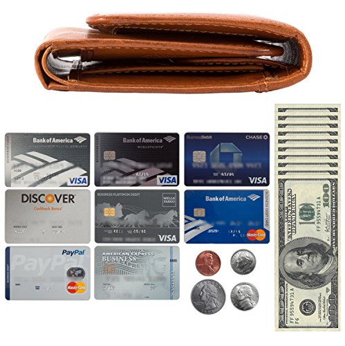 - Organization & features: this trifold clutch wallet with id and coin pouch is a smaller sized clutch wallet. Features a total of eight credit card slots, four receipt pockets, a top currency gusset, id window, and snap closure expandable coin pouch. Snap on coin pocket. Easy to insert id window. Checkbook holder. All of our wallets come in a cardboard box, which can be considered as a gift box. Dimensions: 3.75"(l) x 5.5"(h) x 1"(w). Weight: 0.55lbs.