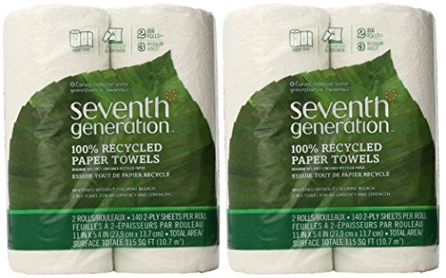 -. Binding : Health and Beauty -. Brand : Seventh Generation -. Color : white -. Feature : Paper Towels whitened without chemicals containing chlorine / Paper Towels made from 100% recycled paper / Minimum 50% post-consumer recycled paper / Paper Towels with no added dyes or fragrances / Strong & Absorbent -. Label : Seventh Generation -. Manufacturer : Seventh Generation -. ProductGroup : Health and Beauty -. ProductTypeName : HEALTH_PERSONAL_CARE -. Publisher : Seventh Generation -. Studio : Seventh Generation -. Title : Seventh Generation Paper Towels Regular Roll, 140 Sheets, White