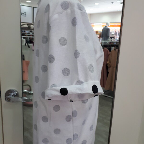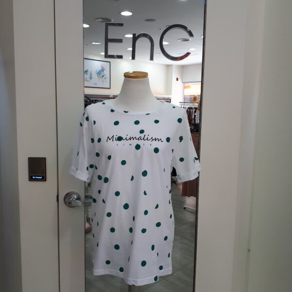 도트 무늬가 앙증맞고 귀여운 티셔츠입니다편하고 캐쥬얼하게 코디할수있는 아이템이랍니다