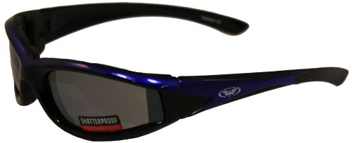 Global Vision Hawkeye Padded Riding Glasses (Blue, Black Frame/Flash Mirror Lens)