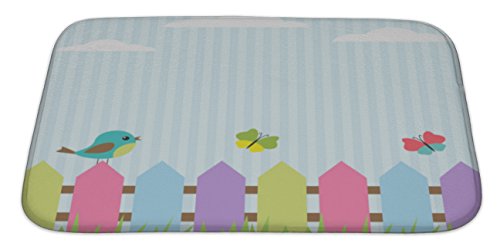 Gear New No Slip Microfiber Memory Foam Bird & Butterflies Bath Rug Mat, 34" X 21"
