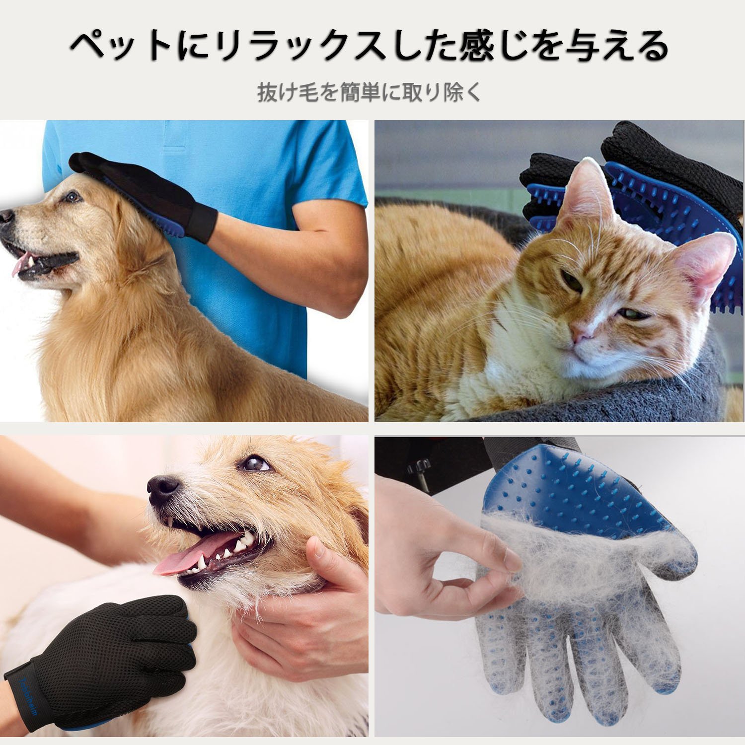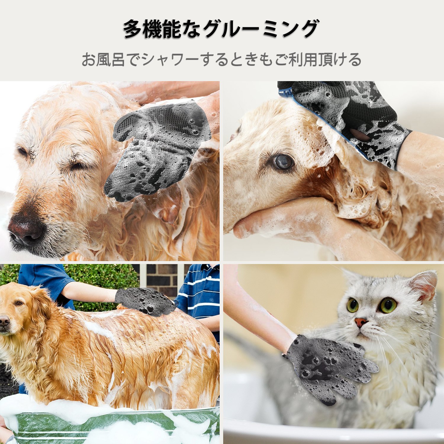 フレキシブル&安全:5本の指のデザインになっているため、または手袋表面が突起がありますので、より深く隠れた抜き毛まで取ることができます、シリコンの素材ですので、安全且つ柔らかくペットにマッサージできます。