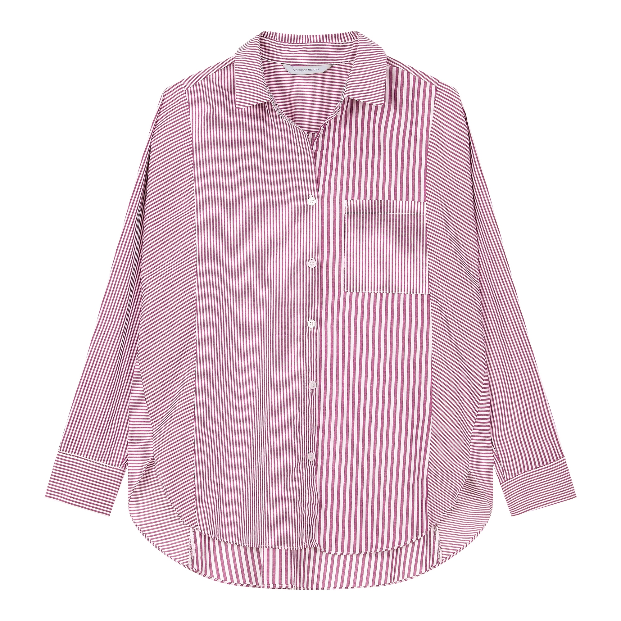 컬렉션 : 2018 Fall/Winter 디자인 포인트 : - 언발란스한 스트라이프 패턴 디테일이 돋보이는 캐주얼한 무드의 블라우스- 앞 뒤 길이가 다른 디테일로 트렌디함을 더한 디자인- 면 소재로 부담없이 스타일링 하기 좋은 포인트 아이템 스타일링 추천 : 다양한 워싱의 스키니진 혹은 슬랙스 팬츠와 트렌디한 스타일링을 연출 할 수 있음