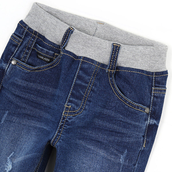 진한 인디고컬러의 슬림일자핏의 밴딩데님팬츠에요.볼륨감있는 워싱효과는 물론 구제 포인트가 멋스러움을 더해주어요~허리에 시보리를 달아 편안한 통밴드 스타일이에요~부드러운 터치감에도 특별히 신경써서아이들이 착용하기에 더없이 좋은 데님팬츠에요 ~