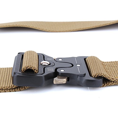 About this Men Tactical Duty Nylon Belt *The perfect ergonomic solution for your load bearing needs. *Fits in the vast majority of military/civilian style pant belt loops. Size Spec Width of Metal buckle: 6.4cm/2.5 inch Width of the nylon belt strap: 3.8cm/1.5in Length of the nylon belt strap: ?120cm/47in Colors available: Black, Tan, Army Green, Navy Blue Package: 1 x Tactical Belt WARRANTY 2-year no questions asked warranty and 30-day money back guarantee. USING TIPS Insert webbing through pants loops, then attach buckle,when some of pants loops are too small for buckle. NOTE This webbing belt as a whole item is not yet labeled or certified for climbing or use as Life Saving Equipment. 0 |