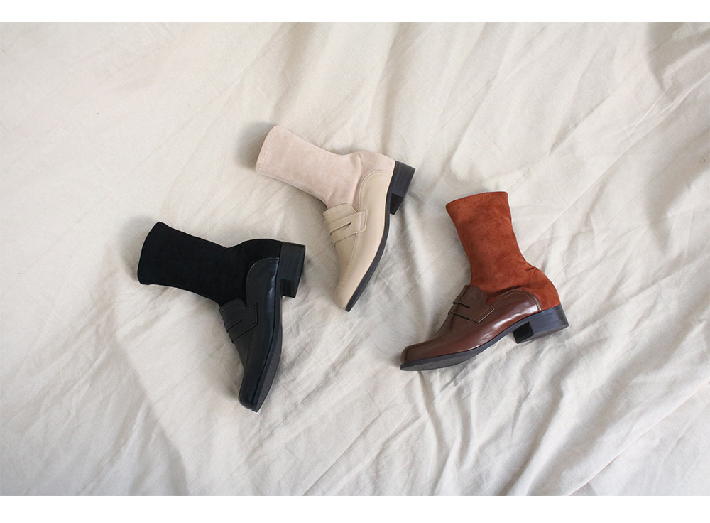 클래식한 로퍼바디에 양말을 신은듯 스웨이드 삭스디자인을