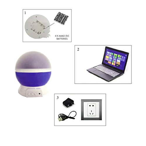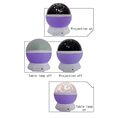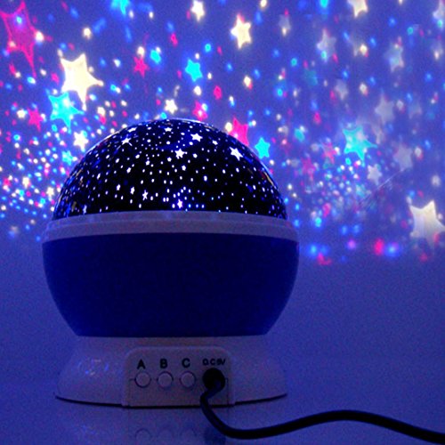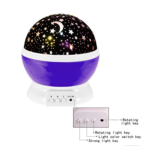 4LED Bead/3Modes, projects sky moon and star light, shape into romantic cosmos star sky, perfect for Wedding Decorations, Baby's Room etc.3 MODEL:A mode:The Nightlight light (warm light) Press A again would shut off A Model.;B mode:Switch for the light color (monochrome light or colorful light overlay)[Note:Press B Button 9 times in a row,The model B would shut off];C mode:It is to control the rotary switch (rotate or do not rotate freely chosen)[Note:Press C again would shut off the rotation]].