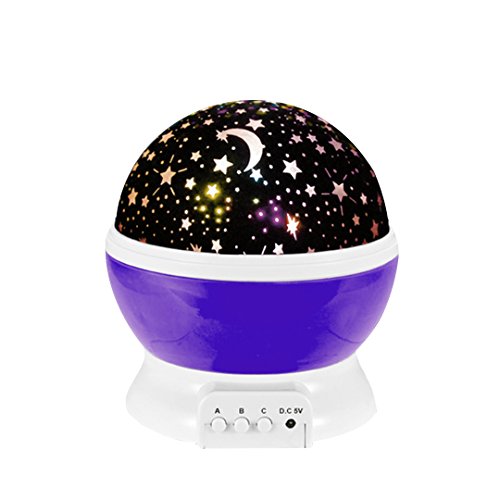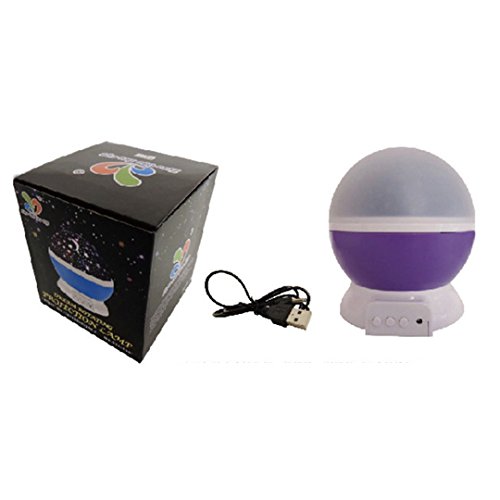 Mily LED Night Lighting Lamp Projector with USB Cable 4 Bright Colors with 360 Degree Moon Star Projection and Rotation Purple