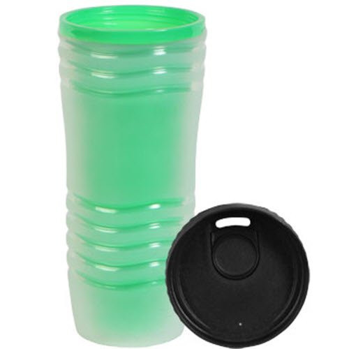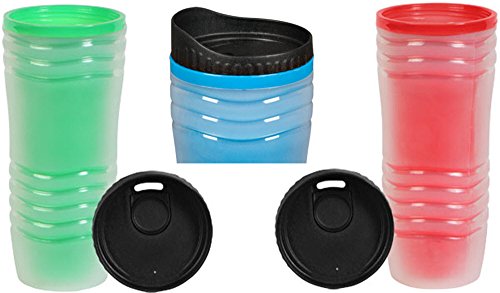 Set of 3 Double Wall Insulated Travel Mugs with Lids - Bright Colors - Green - Red - Blue - 16 Oz Each