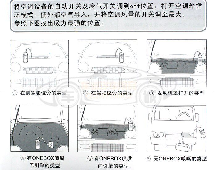 4 try to find out the position of the maximum air inlet suction (by hand orwaste paper test and find the maximum suction inlet according to the different position of the vehicle types are different). A. in the driver'sposition please fully shake the catheter to the copilot direction into thedeep position. B. in the copilot position fully shake please the catheter inshallow position. No matter what kind of situation please in the position of the maximum air conditioning air inlet suction catheter inserted.