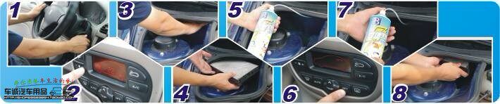 6 fully into the air conditioning cleaning agent (about 2 minutes) then wait for 10 - 15 minutes after the rotation of the fan air conditioning fan willswitch to off position turn off the engine. About 10 minutes after thewaste liquid flows out from the outlet.