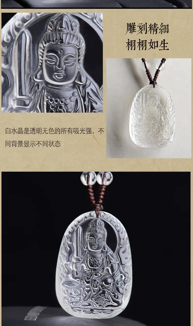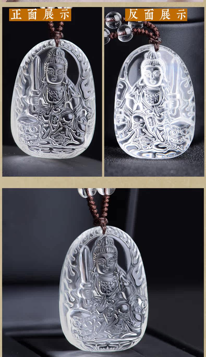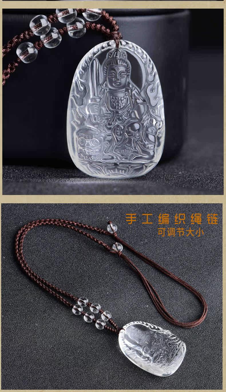 开光天然白水晶文殊菩萨吊坠 本命佛生肖属兔守护神男女士款项链