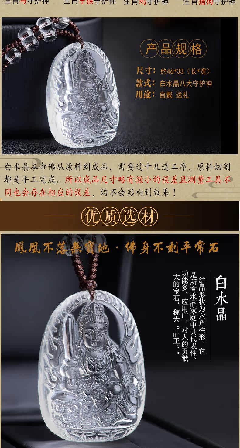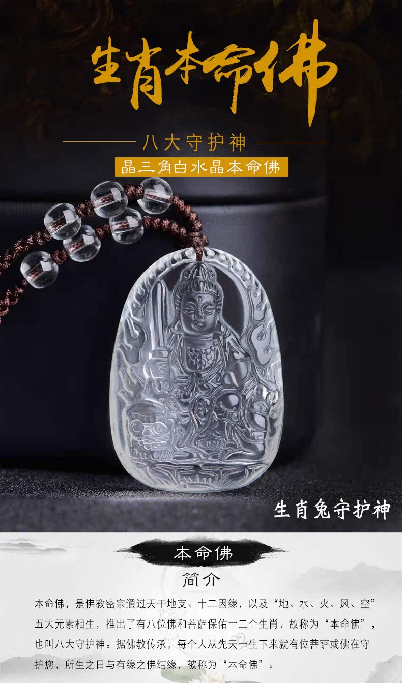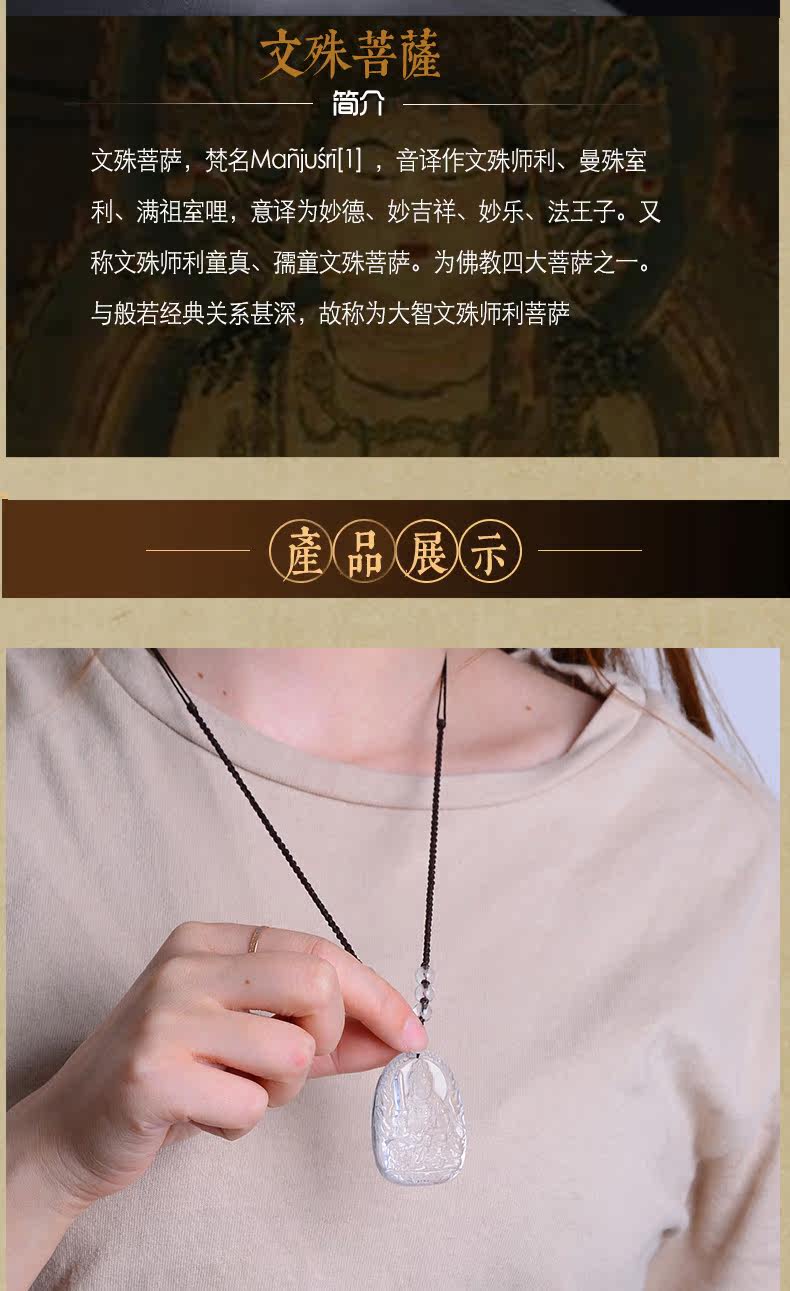 开光天然白水晶文殊菩萨吊坠 本命佛生肖属兔守护神男女士款项链