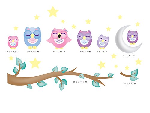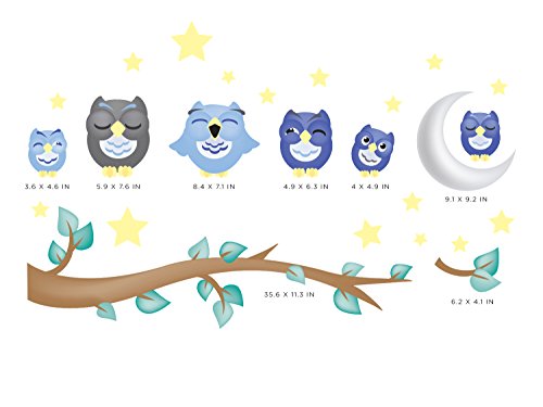 -. Title : Owl Fabric Wall Decals, Set of 6 Owls with Branch, Stars, and Moon, 2 Different Colors to Choose From, Repositionable and Reusable