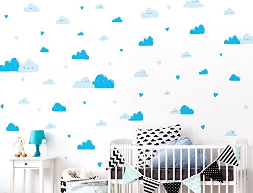 I-love-Wandtattoo WAS-10219 Wall stickers Kids "Blue clouds with faces" 50 pieces Sticker Wall Decal Boy Girl