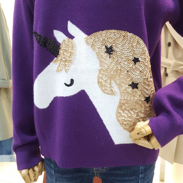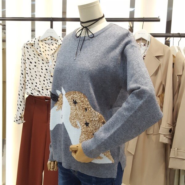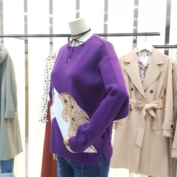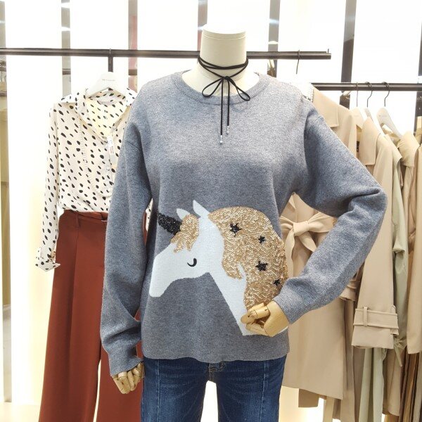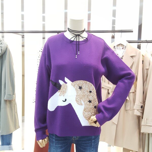 컬러감 돋보이는 니트 티셔츠입니다비즈장식 유니콘이 전면에 포인트가되며 고급스럽고소장가치가 있는 아이템입니다.부드러운 소재감에 신축성 좋은 니트 소재감으로 편하게 즐기기좋은 제품입니다.밑단 옆트임으로 활동하기에 더욱 편하게 나온 스타일입니다.