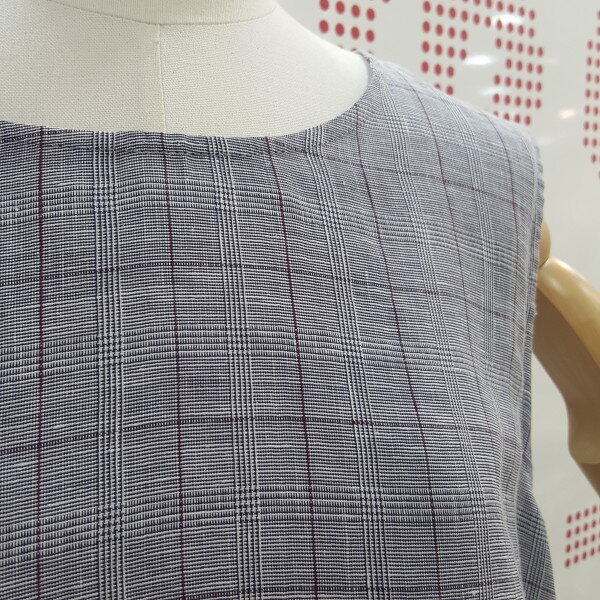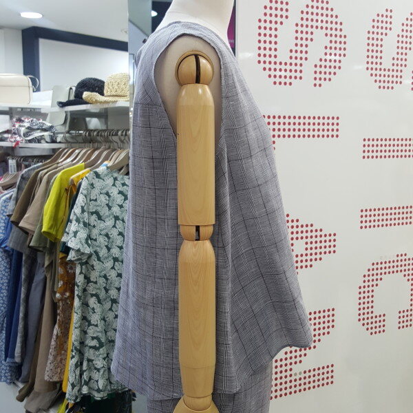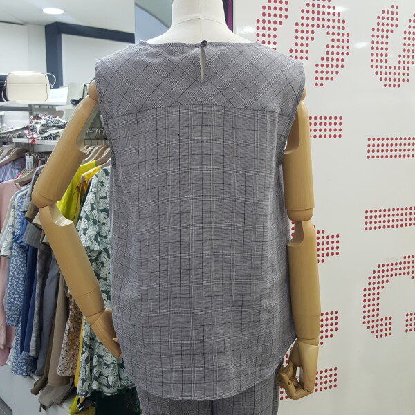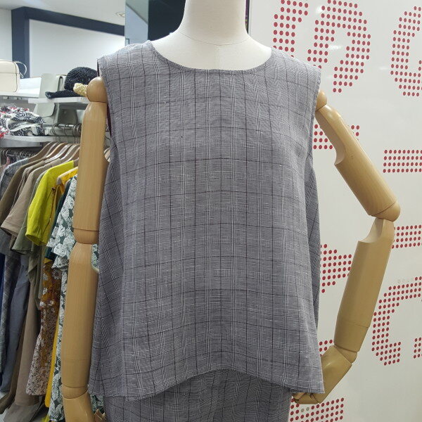 시원한 마소재의 나시 블라우스입니다.잔잔하게 와인체크가 들어가 있어 세련진 스타일로 뒷기장이 살짝 더 길어 멋스런 핏을 연출해줍니다. 총장 61cm